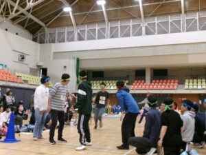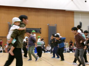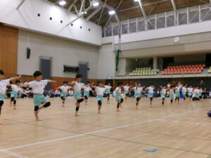 鳴子を持って「どっこいしょ、どっこいしょ」「ソーラン、ソーラン」