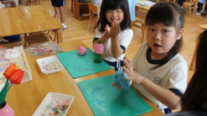 園では母の日に向けて、子どもたちとプレゼント作りをしています。