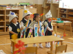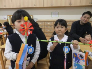 風に矢車がくるくる、嬉しいこいのぼりが出来上がり。