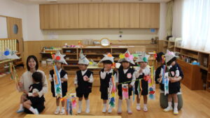 紙コップや折り紙がこいのぼりに。