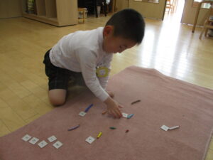 1から10までの数について数字として、数列として又量として十分理解してか確かめる