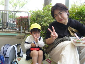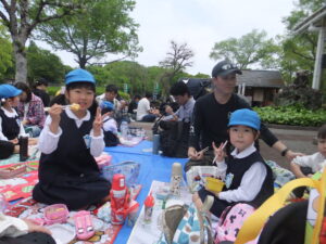 すみれ組さんもたくさん歩いて頑張りました、お弁当おいしいなぁ(^^♪