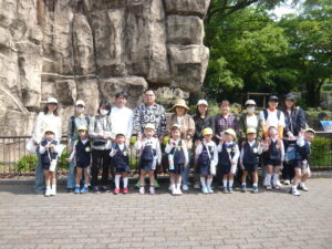 お家の人と一緒に、お弁当とおやつを持っての集合に、子どもたちはとても嬉しそうです。まずは、クラスのお友達とみんなで歩きます。お弁当が待ちきれない様子の子、はやくお目当ての動物の所に行きたい子と、お家の人と楽しく会話をしながら頑張って歩きました。