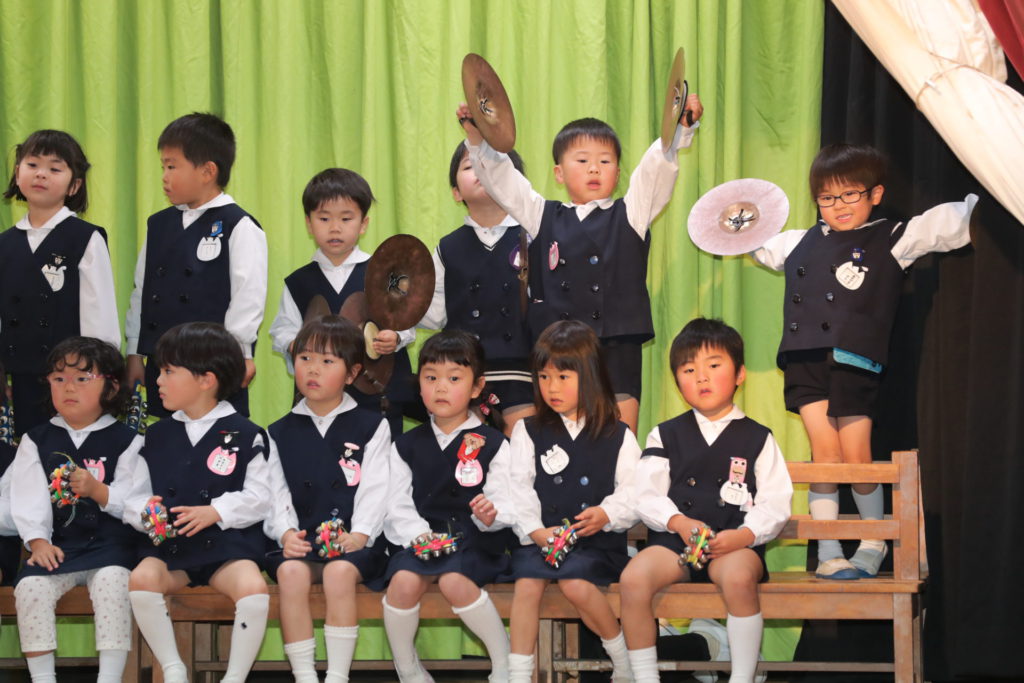 満3歳児、年少児、年中児は手遊びや合奏、合唱をして