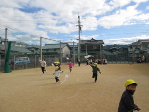 クラスの先生から、たこのあげ方を教えてもらい、自分たちの番です!