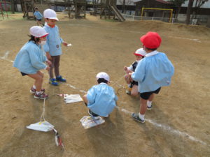 冷たい風を跳ね飛ばすように、園庭を駆け回ります。