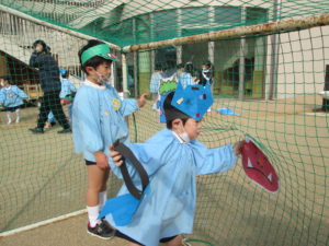 鬼が怖い子どもたちは、全力で玉を投げる投げる!