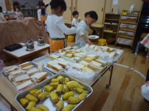 パンプキンサンドのコーナーです。 配膳できますよ! 順番にどうぞ!