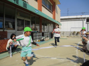 最後は、お母さん達とリレーをしました。