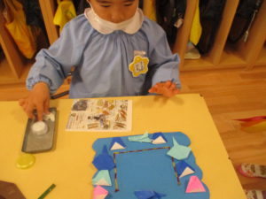 糸の長さを調べ、針に糸を通したり、結んだり・・・