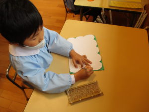 4月から子どもたちに母の日の話をし、年長児はお母さんのことを思いながらプレゼントを準備してきました。