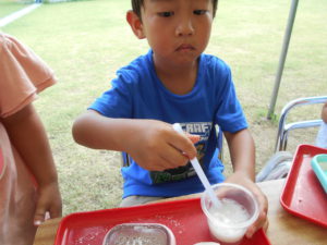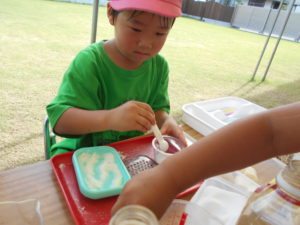 石鹸も砂糖も入れ終わり、最後は水を入れます。