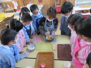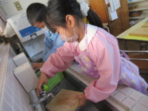 11月4日に年長児がさつまいもの味噌汁とスイートポテトを作りました。